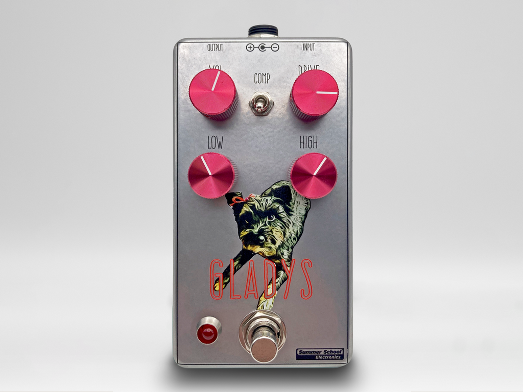The Gladys V2 is an updated version of the Gladys Low/Mid Gain Overdrive. This little lady boasts increased headroom, more gain on tap, a 2-band active eq, and silent switching. Perfect for rock, blues, country and everything in between. The Gladys V2 features 4 knobs: Volume, Drive, Treble and Bass, as well as a switch for added compression.